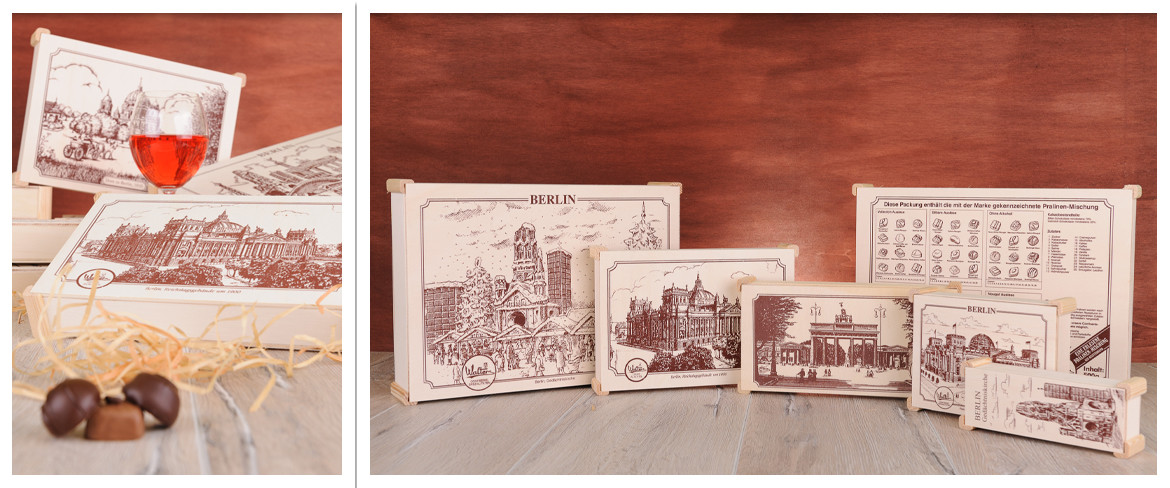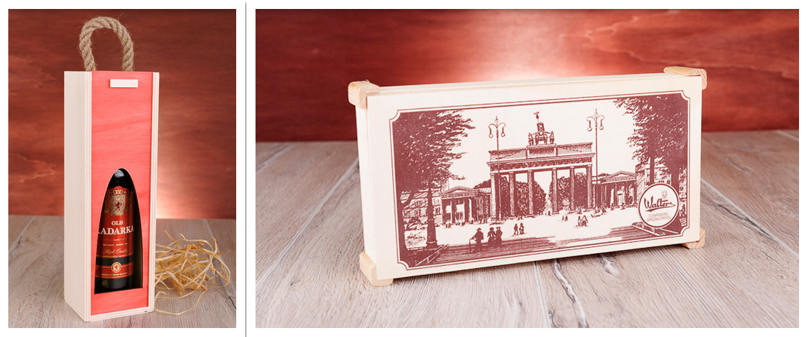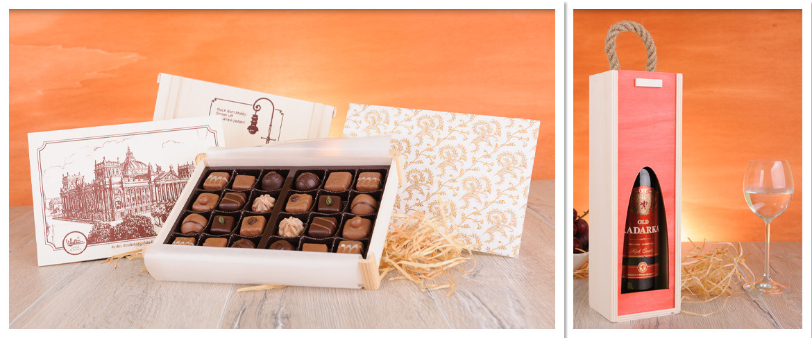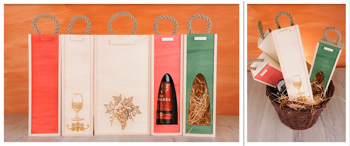 Pudełka zawierają wstawki z drewna oraz sznurka lnianego co podwyższa walory wizualne produktów
